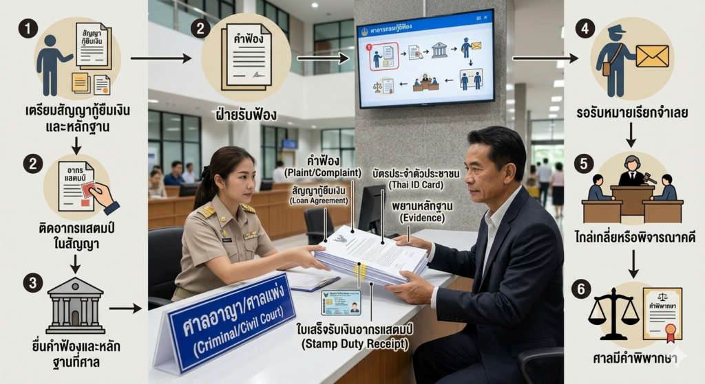 บทความนี้จะอธิบายขั้นตอนสำคัญในการฟ้องคดีกู้ยืมเงินแบบเข้าใจง่าย